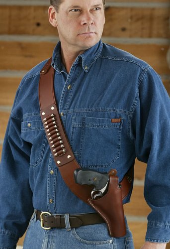 Slap LEATHER! Classic Old West Styles Shoulder Holsters just rode into town. Now available in Left Hand! Nothing but the best oil-tanned leather forms these Old West-style Holsters. DRAW! These Holsters are a modified version of the shoulder rig that fast-shooting outlaws like John Wesley Hardin (said to be "so mean he shot a man for snoring") wore to stay one step ahead of the law and the Grim Reaper. Each comes with detachable 10-rd. cartridge loops... other calibers are available separately below. They change quickly and easily with just a screwdriver. These Holsters keep your pistol hanging naturally and out of the way, especially great for long-barrel models. Easy on / off and incredibly comfortable; Best suited for non-concealed carry; One size fits most; Each weighs approx. 20 ozs. State Hand: Left or Right. Draw on these bargains ONLINE now! AVAILABLE SEPARATELY: Other Holsters for S&W, Ruger, Beretta and Taurus - word search in our Store for 'Shoulder Holsters'. S&W 4" N-Frame Holster with .44/.45/.480 LoopsS&W 4" N-Frame Holster with .44/.45/.480 Loops, RH Review